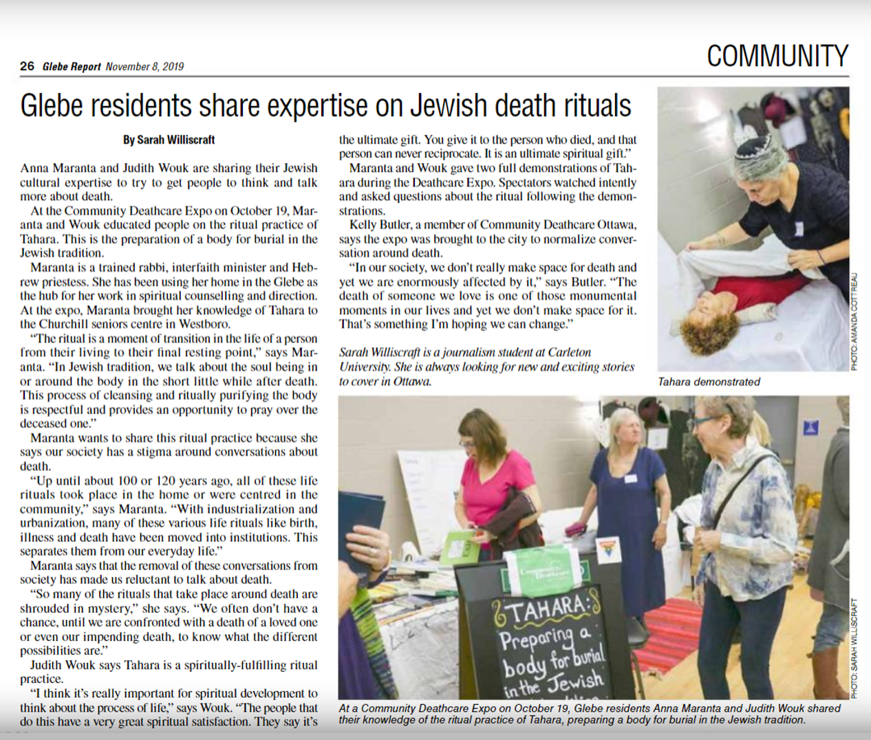Anna Maranta and Judith Wouk educated people on the ritual practice of Tahara, the preparation of a body for burial in the Jewish tradition…