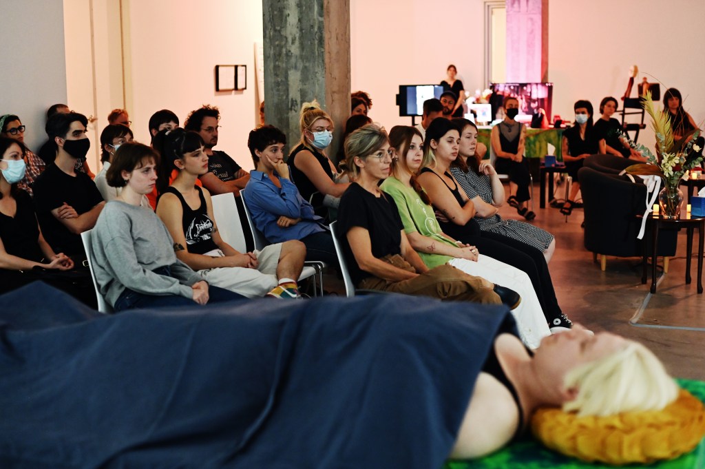 As part of the work Le travail que l’on rêve gratuit, presented in the exhibition The Radical Imaginary: Reclaiming Value, Debbie Charbonneau and Kelly Butler led a workshop on death care and home funerals which aimed to share knowledge and alternative practices to the conventional funeral industry.