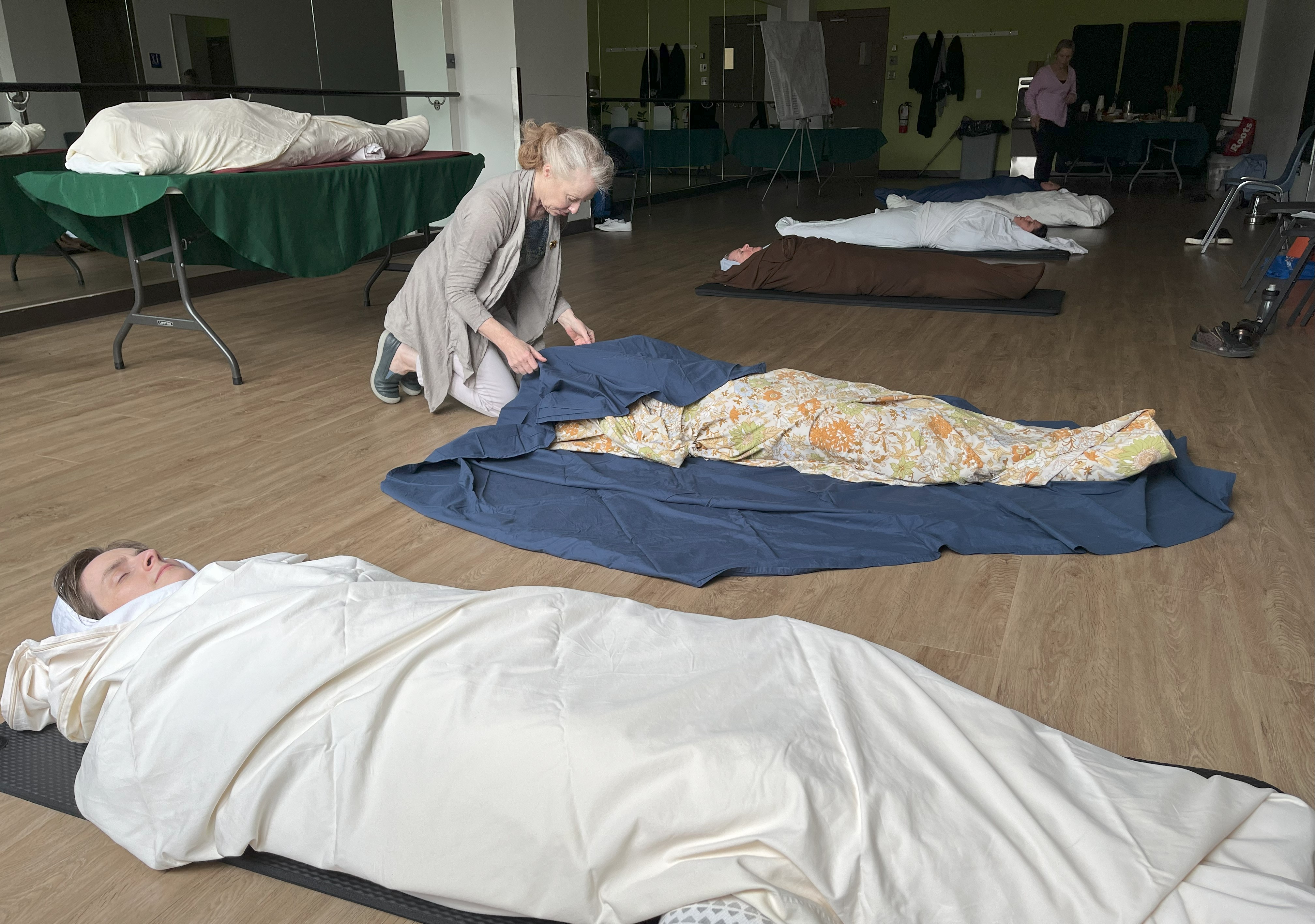 After a shrouding demonstration by Rabbi Anna Maranta and Kelly Butler, we became a room full of seedpods, returning to the earth to feed the life to come.