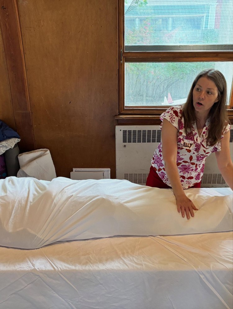 Kelly spoke about the historical and cultural significance of shrouds, various types of shrouds, and shared a specific technique to demonstrate how the art of shrouding can transform grief into a tender act of care.