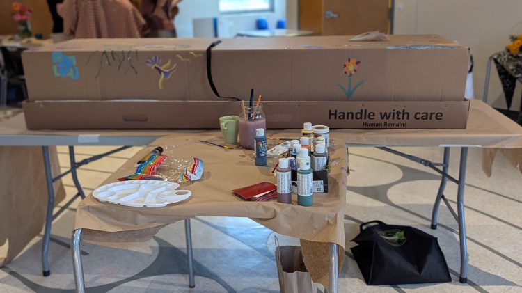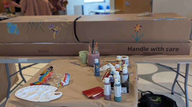 - Cardboard casket painting with Kayla Spagnoli