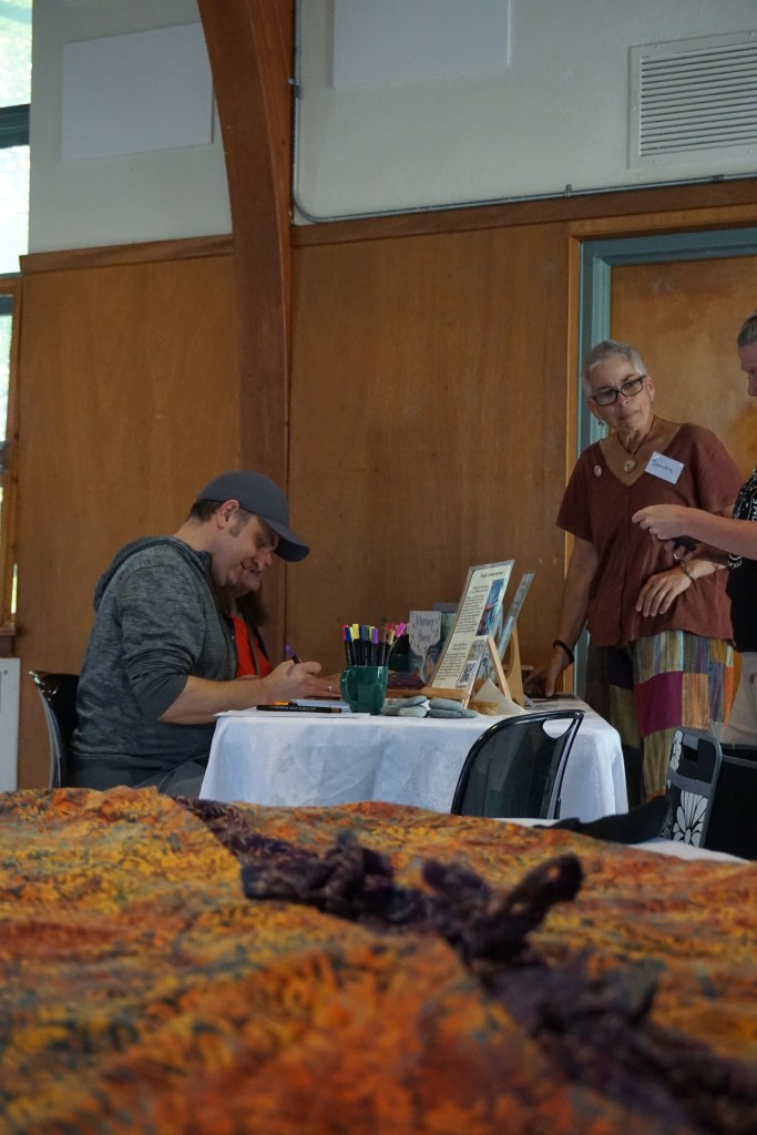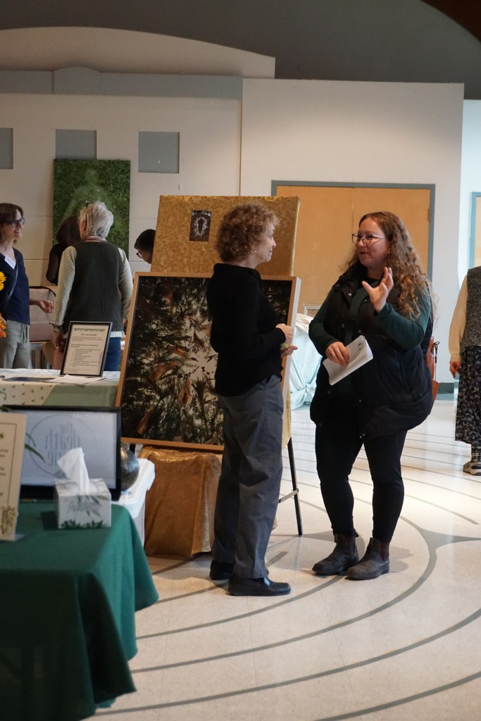 We were joined by a wide array of skillful practitioners and care providers, including social workers, hospice volunteers, funeral directors, celebrants, death doulas, and bereavement counselors. We were delighted to welcome the many organizations who joined us to share resources; hospice programs, funeral homes, ceremonialists, and local bookstore Octopus Books – who arrived with a great selection of books on dying, death, and grief! Stars of the show were Beau and Diesel, two therapy dogs who demonstrated their expertise in canine comfort.